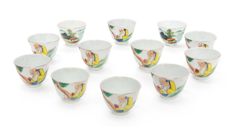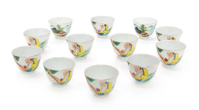 Eleven Chinese Famille Rose Porcelain Wine Cups Diameter of earch 2 3/4 inches.