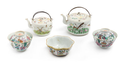 Five Chinese Famille Rose Porcelain Tea Wares Height of tallest 4 1/4 inches