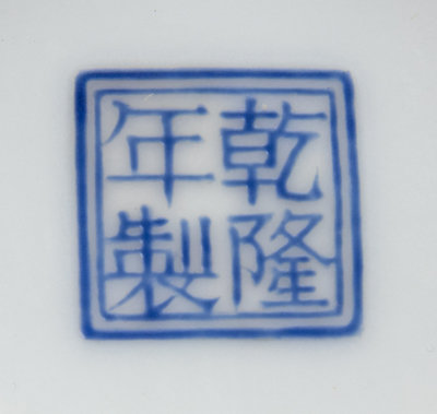 having rounded walls, painted to the exterior with landscapes, the underside bearing an apocryphal Qianlong fou-character blue enameled seal mark.