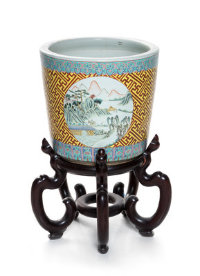 A Chinese Famille Rose Cachepot Height 15 1/4 inches.