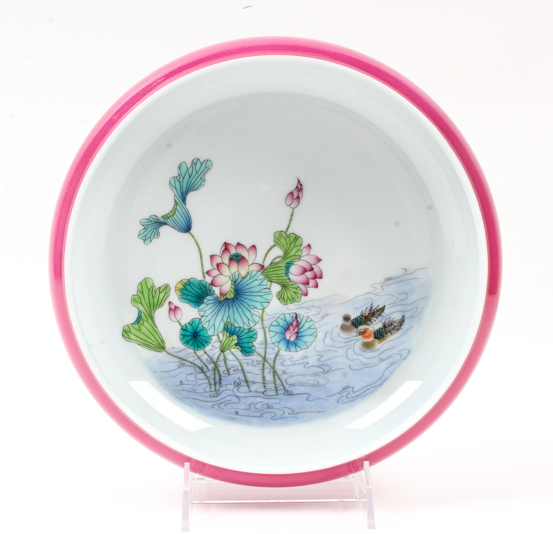 the interior painted with a lotus pond showing lotus flowers and madarin ducks.