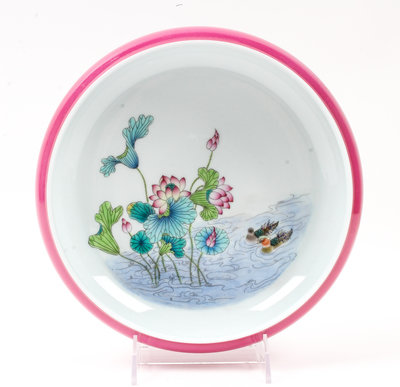 A Chinese Ruby-Back and Famille Rose Porcelain Jardiniere Diameter 9 inches.