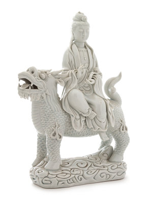 A Chinese Blanc-de-Chine Porcelain Figure of Guanyin Height 12 3/4 inches.