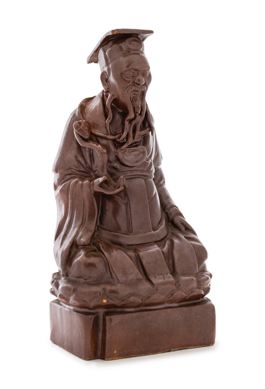 A Chinese Brown Glazed Porcelain Figure of an Immortal Height 10 inches.