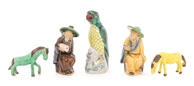 Five Chinese Glazed Porcelain Figures Height of largest 4 5/8 inches.