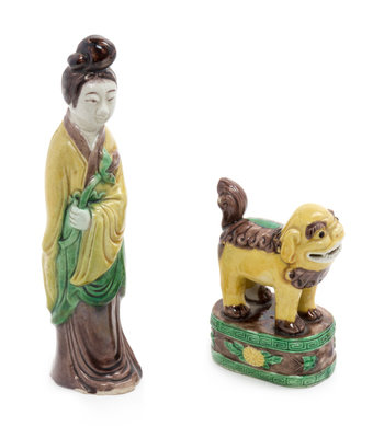 Two Chinese Sancai Porcelain Figures Height of tallest 7 3/4 inches.