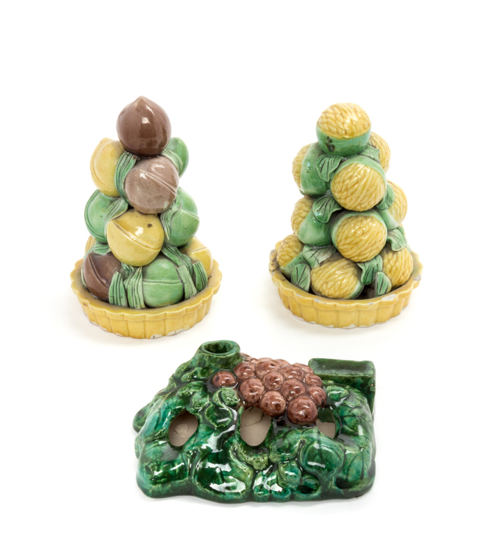 Three Chinese Sancai Glazed Porcelain Wares Height of tallest 5 1/4 inches.