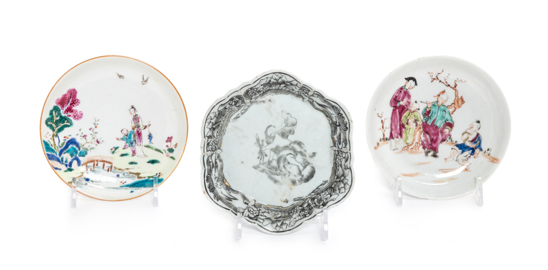 comprising two famille rose examples and one grisaille example.