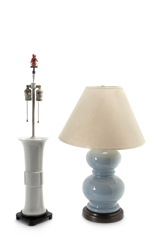 Two Chinese Export Porcelain Lamps Height 31 inches overall (of first).