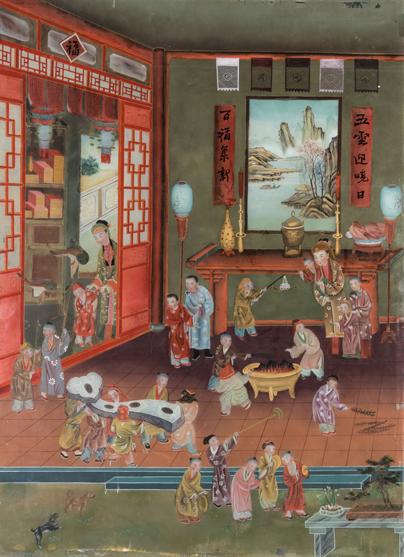 A Chinese Reverse Glass Painting Height 31 3/4 x width 23 3/4 inches.