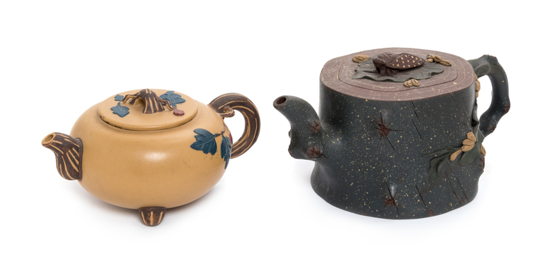Two Chinese Yixing Pottery Teapots Height of taller 4 inches.