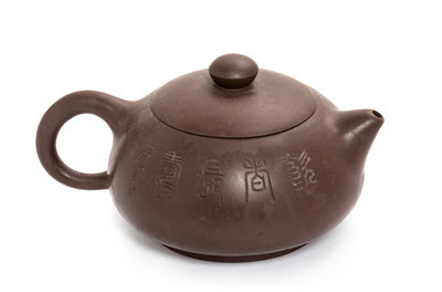 A Chinese Yixing Pottery Teapot Height 3 1/2 inches.