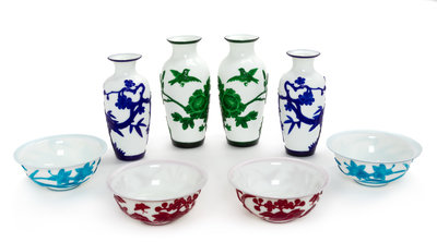 Eight Chinese Peking Glass Articles Height of tallest 10 inches.