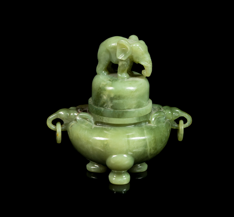 A Chinese Jade Covered Censer Height 5 1/2 inches.