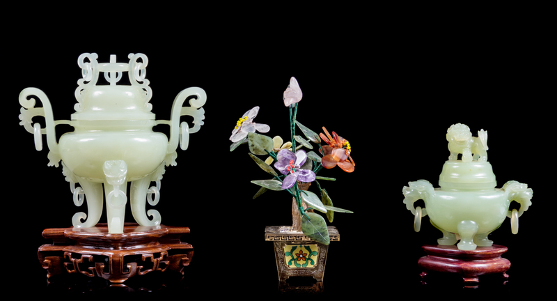 Three Chinese Hardstone Articles Height of Largest 6 1/2 inches.