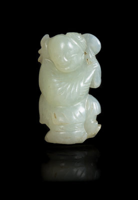 A Chinese Pale Celadon Jade Figure of a Boy Height 1 7/8 inches.