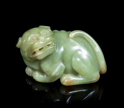 A Chinese Green Jade Figure of a Mythical Beast Length 4 inches.