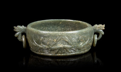 A Carved Spinach Jade Brush Washer Diameter 5 1/4 inches.