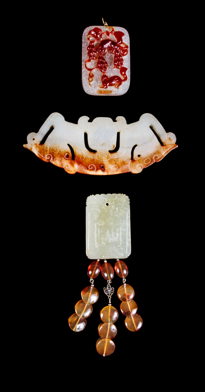 Three Chinese Hardstone Pendants Length of largest 4 1/2 inches.
