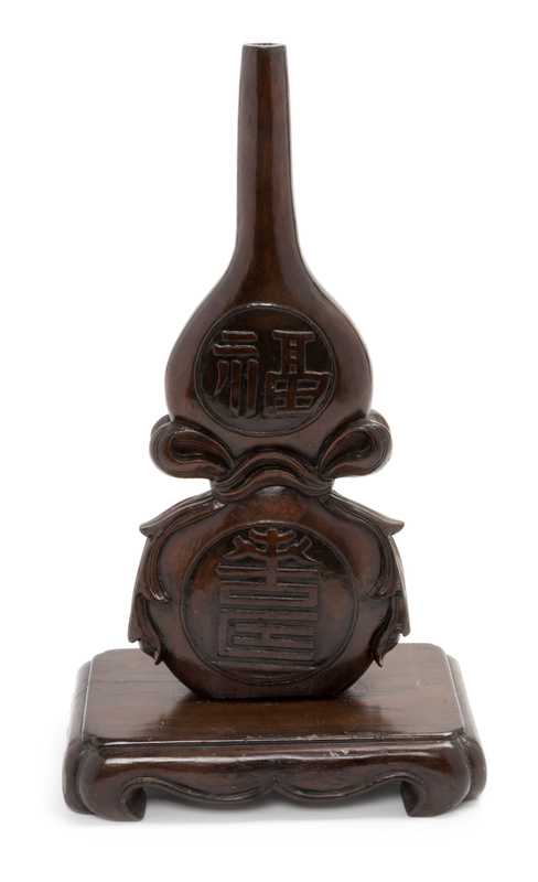 A Chinese Carved Hardwood Gourd-Form Vase Height 17 3/4 inches.