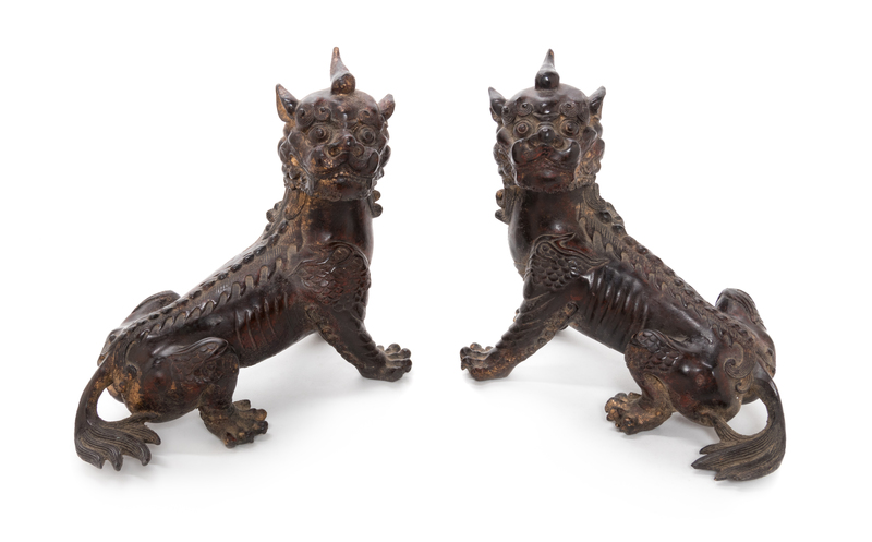 A Pair of Chinese Gilt Bronze Figures of Qilin Height 8 1/4 inches.