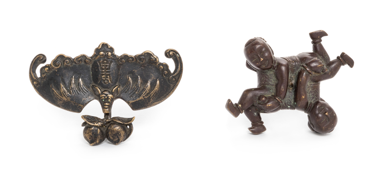 Two Chinese Small Bronze Articles Length of bat 3 inches.