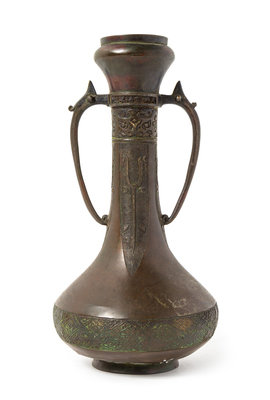 A Chinese Bronze Handled Vase Height 12 3/8 inches.