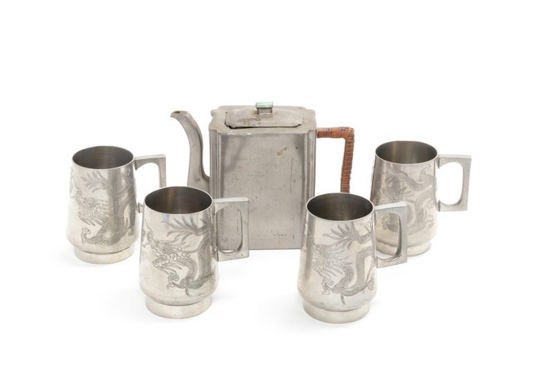 Five Chinese Pewter Tea Wares Height of tallest 5 1/2 inches.