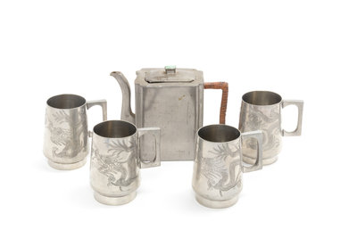 comprising one teapot and four cups.
