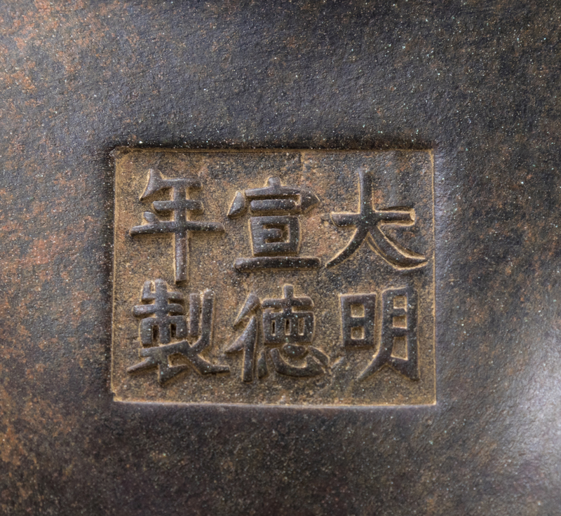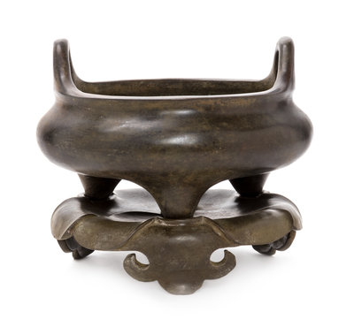 A Chinese Bronze Tripod Censer with Stand Height overall 7 1/2 inches.
