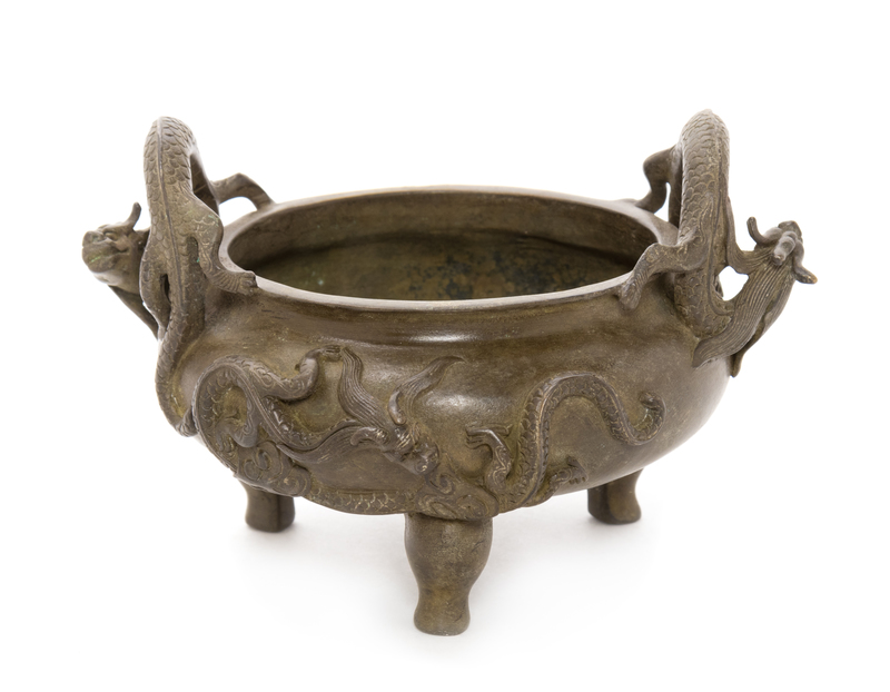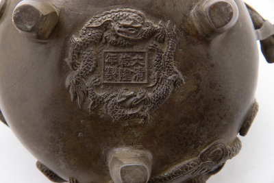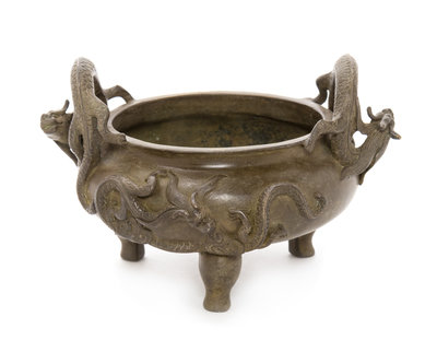 A Chinese Bronze Tripod Chilong Censer Height 4 inches.
