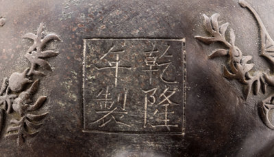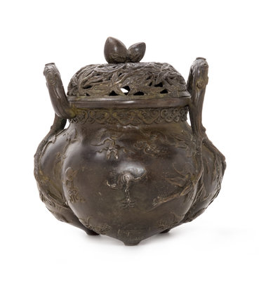 A Chinese Bronze Peach-Form Censer Height 6 1/2 inches.