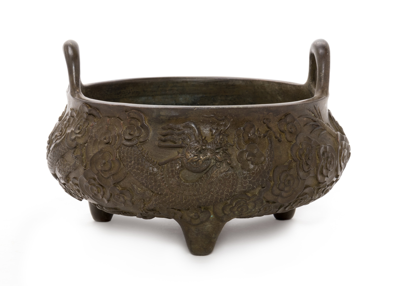 A Chinese Bronze 'Dragon' Tripod Censer Diameter 5 1/2 inches.