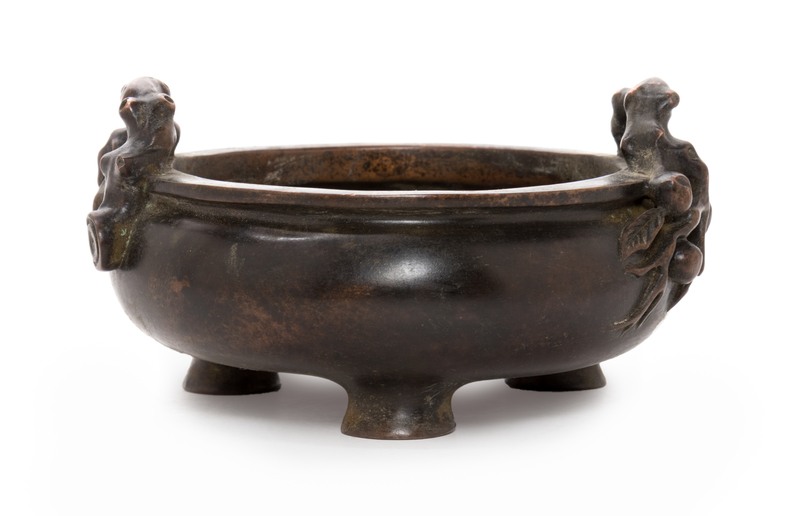 A Chinese Bronze Tripod Censer Diameter 5 1/4 inches.