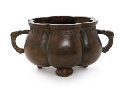 A Chinese Bronze Ruyi Handled Censer Diameter 6 inches.
