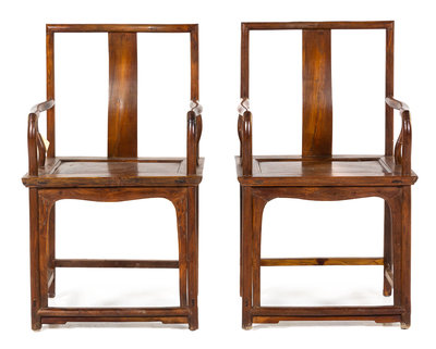 A Pair of Chinese Hardwood Armchairs Height 39 x width 23 x depth 17 1/2 inches.