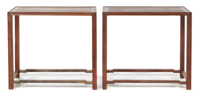 A Pair of Chinese Hardwood Side Tables Height 29 1/4 x width 32 3/4 x depth 16 1/4 inches.