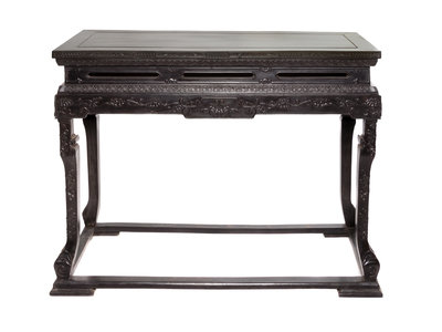 A Chinese Black Lacquer Table Height 32 3/4 x width 44 1/2 x depth 18 1/2 inches.