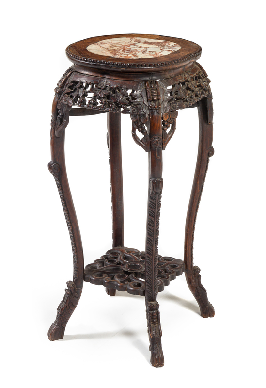 A Large Chinese Marble Inset Hongmu Side Stand, Huaji Height 36 1/2 x width 16 x depth 16 inches.