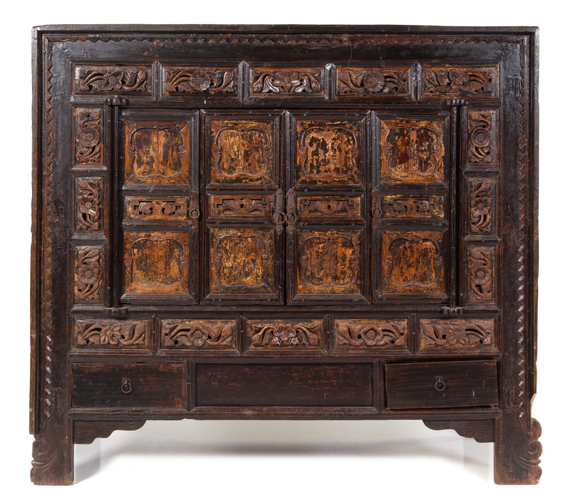 A Mongolian Softwood Cabinet Height 58 3/4 x width 64 x depth 23 inches.