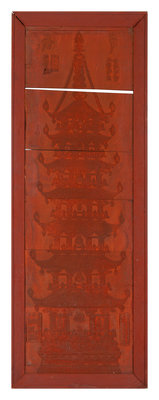 A Large Chinese Red Lacquered Wood Panel Height 76 x length 27 x width 2 inches.