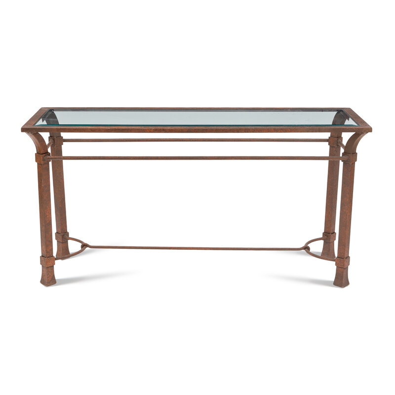 A Patinated Iron and Glass Console Table