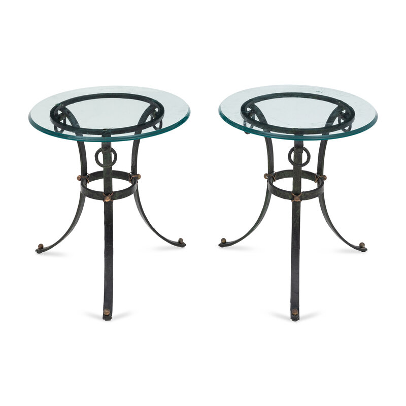 A Pair of Spanish Colonial Style Parcel-Gilt Iron Side Tables