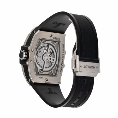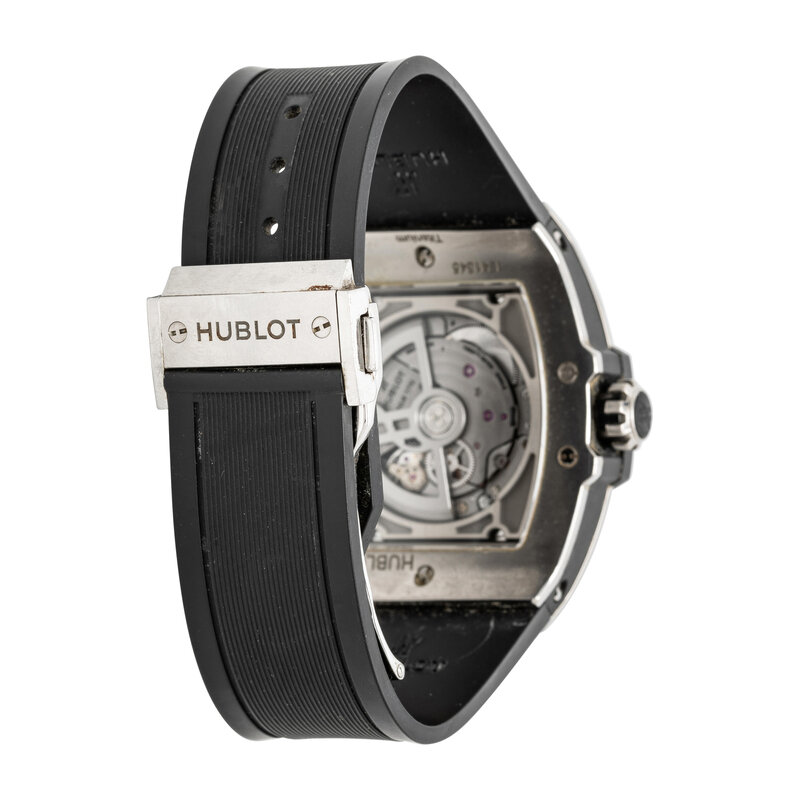 Stamps: Case: HUBLOT SPIRIT OF BIG BANG 1241345 Titanium CRT. Movement: HUBLOT MHUB 1770 SWISS MADE TWENTY-SEVEN JEWELS. Clasp: HUBLOT STAINLESS STEEL.