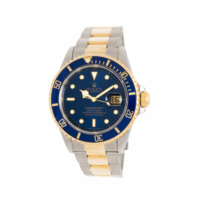 The Rolex Submariner Reference 16613 is a quintessential two-tone (Yellow Rolesor) luxury dive watch produced between 1988 and 2009. It is highly regarded by collectors as the last "classic" two-tone Submariner to feature an aluminum bezel insert and more tapered case proportions before the transition to ceramic bezels and "Super Cases".