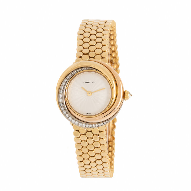 Cartier, Ref. WG200258, 18K Tricolor Gold 'Trinity' Watch With Factory Diamond Bezel and Crown, with Box & Papers