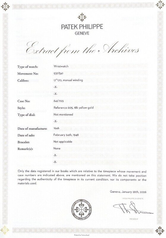 Patek Philippe, Ref. 605, 18K Yellow Gold 'World Time' Pocket Watch, with Extract from the Archives