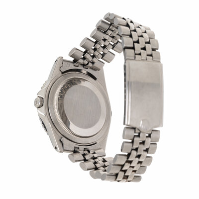 Stamps: Inner case back: MONTRES ROLEX SA GENEVA SWITZERLAND PATENTED STAINLESS STEEL 1675. Movement: ROLEX SA GENEVA TWENTY FIVE 25 JEWELS SWISS. Case: (partially obscured) 1675 REGISTERED DESIGN. Clasp: STAINLESS STEEL ROLEX U.S.A.