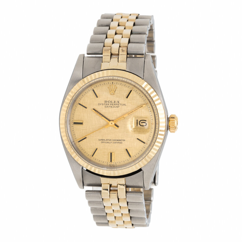 Rolex, Ref. 1601, Stainless Steel and 14K Yellow Gold 'Linen Dial' 'Datejust' Watch