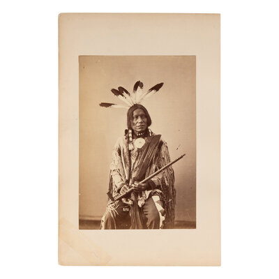 Red Lodge, also known as Pi-pi-sha, was a member of the Yanktonai Dakota delegation to Washington, DC, who visited the Capitol between September 15 and the 20th. Although they negotiated with the government, no treaty was signed. The number, 290 in the neg. is William Henry Jackson's entry number in his 1874 and 1877 Catalogue of photographs in the US Geological Survey.